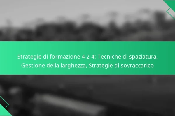 La formazione 4-2-4 è un assetto tattico dinamico che enfatizza tecniche di spaziatura efficaci, gestione della larghezza e strategie di sovraccarico. Ottimizzando il posizionamento dei giocatori, le squadre possono creare linee di passaggio e sfruttare le lacune difensive, migliorando sia il gioco offensivo che quello difensivo. Una corretta gestione della larghezza è essenziale per mantenere…