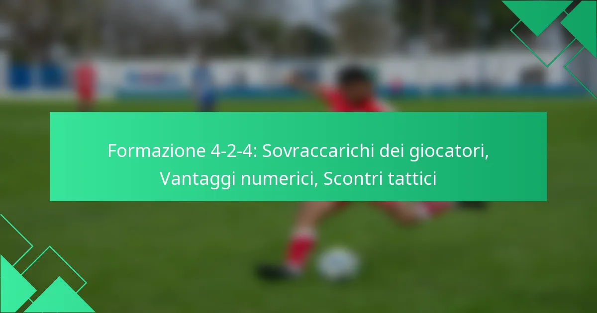 La formazione 4-2-4 crea vantaggi numerici posizionando quattro attaccanti contro la difesa avversaria, consentendo sovraccarichi in aree chiave. Questo schema può portare a discrepanze tattiche, consentendo alle squadre di sfruttare le debolezze nella formazione avversaria e migliorare le opportunità offensive.