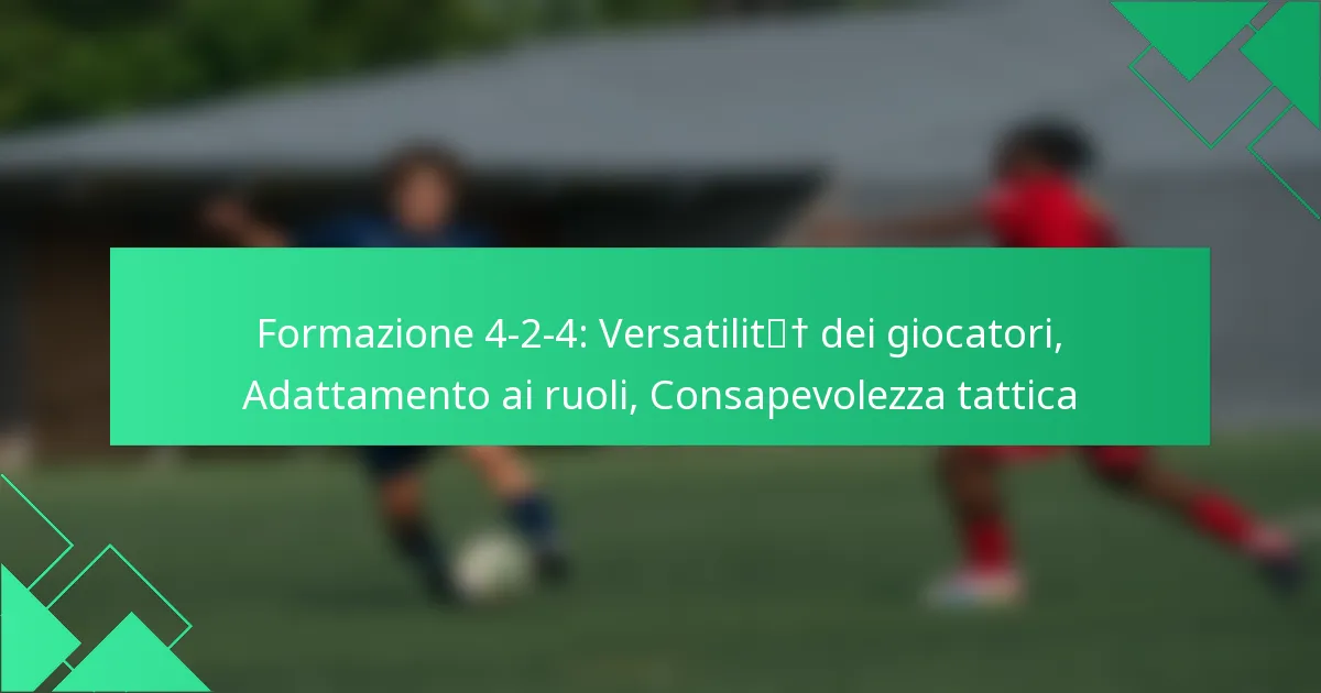 La formazione 4-2-4 è un assetto tattico dinamico nel calcio, caratterizzato da quattro difensori, due centrocampisti e quattro attaccanti, progettato per dare priorità al gioco offensivo garantendo al contempo stabilità difensiva. L’implementazione riuscita di questa formazione dipende dalla sinergia tra i giocatori, dove abilità complementari e una comunicazione efficace favoriscono un’unità coesa in grado di eseguire tattiche intricate sul campo.