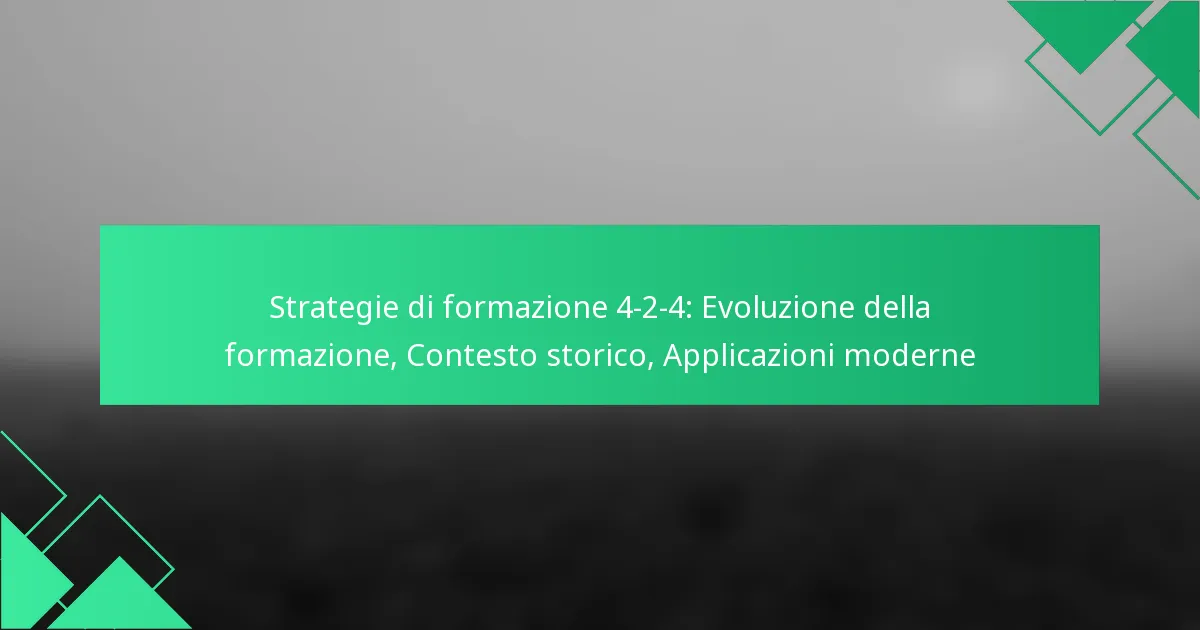La formazione 4-2-4 è un assetto tattico che combina quattro difensori, due centrocampisti centrali e quattro attaccanti, promuovendo un equilibrio tra gioco offensivo e difensivo. La sua evoluzione riflette il cambiamento del panorama delle strategie calcistiche, adattandosi alle moderne filosofie di allenamento pur mantenendo la sua importanza storica come approccio trasformativo a metà del XX secolo.