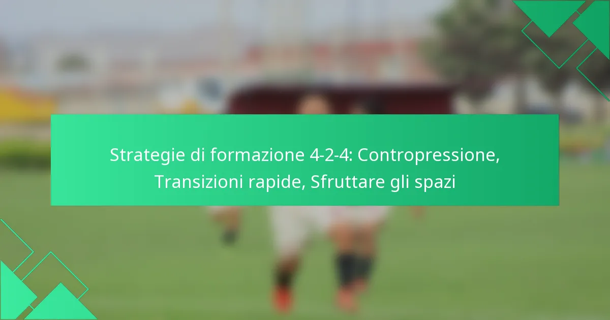 Aggiustarsi per i contropiedi è cruciale nella formazione 4-2-4, poiché la squadra deve rapidamente passare dalla difesa all’attacco. Quando si perde il pallone, i giocatori più vicini dovrebbero immediatamente pressare per riconquistare il possesso, mentre gli altri dovrebbero ritirarsi per mantenere la forma difensiva.